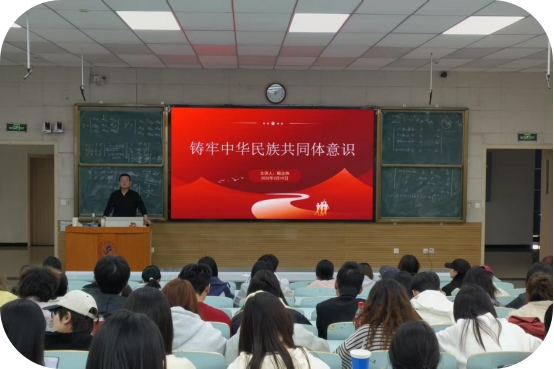 辅导员顾志伟围绕中华民族共同体意识的内涵、重要性等方面,通过深入浅出地讲解历史故事和现实案例,深刻剖析了中华民族共同体意识在推动国家发展、维护民族团结进程中所蕴含的深远意义与巨大价值。