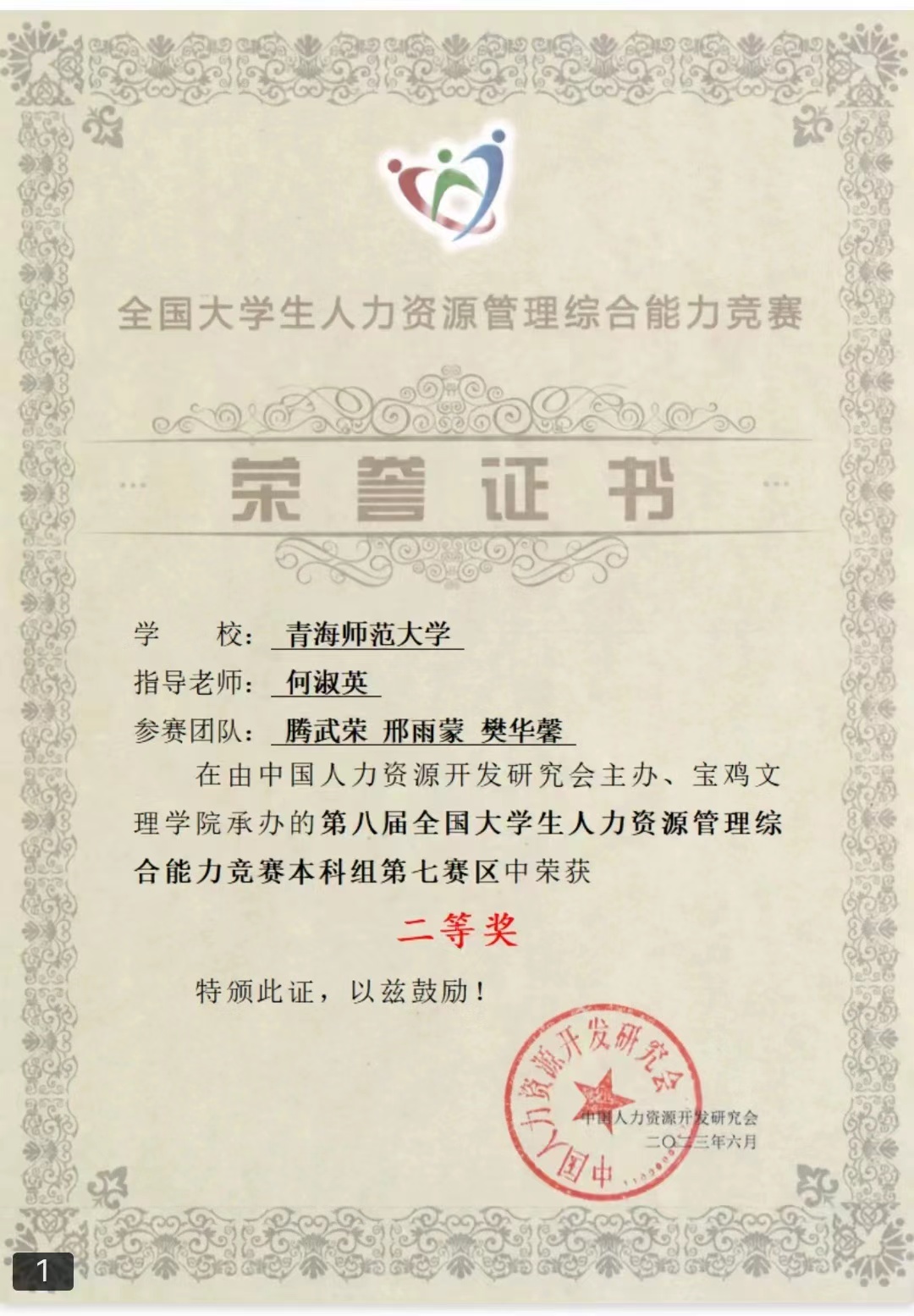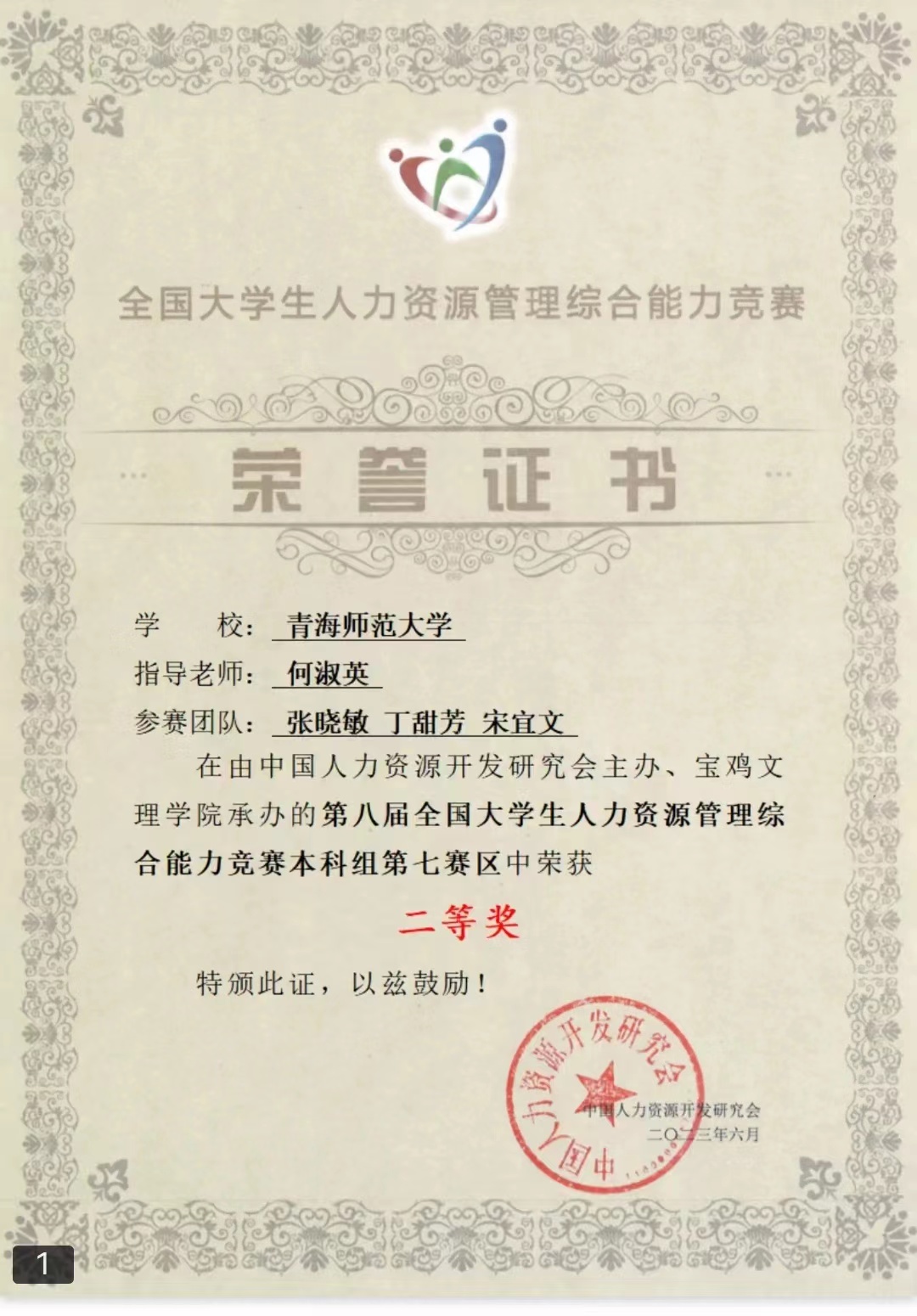 在公司何淑英老师的带领下,自2023年4月29日,由2020级人力资源管理班6位同学组成的两支队伍(分别是book思议小组和运筹vivo小组),参加第八届全国老员工人力资源管理综合能力竞赛本科组第七赛区线上“HR大数据分析”并成功晋级,并于2023年6月24日-25日赴宝鸡文理公司参加第八届全国老员工人力资源管理综合能力竞赛本科组第七赛区线下“HR实务设计”环节并取得二等奖的优异成绩。