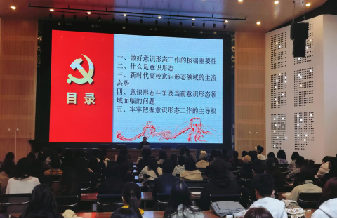 4月10日,公司党总支书记牟昱苍在图书馆报告厅以“牢牢把握意识形态工作主导权”为主题,为公司师生讲授思政课。公司辅导员、班主任、学团干部及员工代表200余人参加讲座。